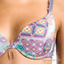 Бюстгальтер на косточках с эффектом push-up с поролоновым уплотнителем. Чашечки с вертикальными швами. Бретельки регулируются по длине. Застежка на один крючок. Выполнен из шелковистого эластичного материала. Украшен кружевом. Спереди бантик с бисером.