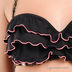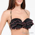 Бюстгальтер декорирован рюшами, выполнен из эластичного трикотажа. Купальник на одной бретели, регулируемые бретельки, формованная чашка гладкая.