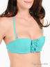 Бюстгальтер в форме бандо. Чашки дублированы мусом для придания пышности груди. Съемные мультипозиционные бретели завязываются на шее. Сочетание жабо из микрофибры, вырезанной лазером «английской вышивки» с маленькими пуговицами и плоскими бантиками. Металлическая застежка темно-серого цвета с логотипом Chantal Thomass