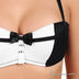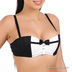 Бюстгальтер с чашками оригинальной формы. Чашка поролоновая. Бретели несъемные, регулируемые. Застежка на два крючка, три позиции. Чашки декорированы контрастной вставкой, бантиком и пуговицами, что создает эффект смокинга.