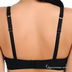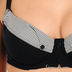 Мягкая чашка без вставок. Бретели несъемные, регулируемые. Застежка на два крючка, три позиции. Чашки декорированы контрастной вставкой с "отложным воротничком на пуговицах".