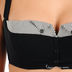 Бюстгальтер с чашками оригинальной формы. Чашка поролоновая. Бретели несъемные, регулируемые. Застежка на два крючка, три позиции. Чашки декорированы контрастной вставкой с "отложным воротничком на пуговицах".