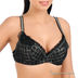 Мягкая чашка без вставок. Бретели несъемные, регулируемые. Застежка на два крючка, три позиции. Чашки декорированы вышивкой и сетчатой оборкой по верхней части. Бретели украшены тесьмой.