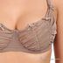 Мягкая чашка без вставок. Бретели несъемные, регулируемые. Застежка на два крючка, три позиции. Эластичный сетчатый материал. Чашки из присборенной двухслойной сетки украшены бантиками.