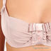 Мягкая чашка без вставок. Бретели несъемные, регулируемые. Застежка на два крючка, три позиции. Эластичный сетчатый материал. Передняя часть декорирована атласной вставкой, бантом, пуговичками и оборками.