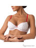 Бюстгальтер выполнен в белом цвете с красным раппортным принтом «Fishnet». Тонкая красная резинка, которой обработаны все детали изделия, обеспечивает непревзойдённый комфорт. Яркий атласный бантик с пуговицей и золотой рыбкой-подвеской делает модель стильной и элегантной.