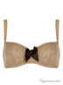 Эффектный бюстгальтер ваер-бра, усиленный каркасной поддержкой, с глубокими мягкими чашками, выполнен в оригинальном сочетании деликатной сетки и изысканных кружев. Комфортные широкие бретели обеспечивают великолепную поддержку груди. Роскошный бант в стиле ретро-ню дополняет дизайн модели, превращая её в образец безупречной роскоши и красоты.
