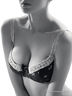 Классический бюстгальтер ваер бра (waerbra) усиленный каркасной поддержкой с глубокими мягкими чашечками. Эффектная отделка кружевом «фриволите» оригинально сочетается с деликатной бельевой микрофиброй благородного чёрного цвета в пасторальный мелкий цветочек. Изысканный бант из шёлковой репсовой ленты великолепно акцентирует сексуальную ложбинку в центре декольте. Удобная и стильная модель классической посадки рекомендуется дамам со средним и пышным объёмом бюста.