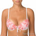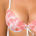 Яркий и в то же время нежный бюстгальтер с гелевыми чашечками "пуш-ап". Чашки украшены вышивкой кораллового цвета в виде цветов и соединены завязками из тонкой ленты.