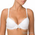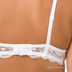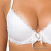 Романтичный бюстгальтер с украшением впереди. Чашечки "пуш-ап" с ажурным покрытием и рюшами по краям.