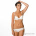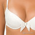 Нежный бюстгальтер молочного цвета с украшением впереди. Покрытые ажуром чашечки с уплотнителем приподнимают грудь и делают ее более привлекательной.