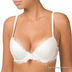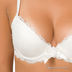Романтичный бюстгальтер с украшением впереди. Чашечки "пуш-ап" с ажурным покрытием и рюшами по краям.