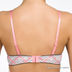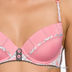 Бюстгальтер. Бюстгальтер на косточках с диагональным швом. Косточка в задней части бюстгальтера, близко к чашечкам. Съемные регулируемые бретельки. Застегивается сзади на два крючка. Изготовлен из приятной на ощупь эластичной ткани, тканевая подкладка. Украшен вставками в серо-розовую клетку, декоративной прстрочкой, пуговицами и рюшами. В комплект входят съемные(на липучках) поролоновые уплотнители.