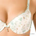 Элегантный бюстгальтер Push-up нежных оттенков декорирован двухцветным бантиком с двойной цепочкой со стразами и бабочками спереди. Чашечки и передняя часть бретель декорированы тесьмой-вышивкой.