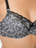 Бюстгальтер из мягкой эластичной ткани весь на тонкой поролоновой пенке на косточках. Подклад тонкий хлопковый. Верхняя ткань мягкая эластичная серого цвета с черным рисунком. Верхняя половина чашки декорирована кружевом. Бретели широкие регулируемые, спереди имеют застежку можно открывать чашку для кормления. Застежка маленькая, не заметная позволяет носить бюстгальтер в любых случаях. Сзади застежка 3 крючка на 3 позиции, на застежке выбит логотип LUPOLINE. Внимание! В маленьких размерах бретели и спинка бюстгальтера узкие, застежка 3 крючка на 2 позиции.