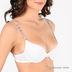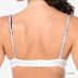 Оригинальный бюстгальтер с поролоновыми чашками. Выполнен из тонкого эластичного трикотажа. Несъемные эластичные бретели регулируются по длине. Застежка на два крючка в три позиции. Дополнен контрастной резинкой.