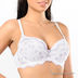 Оригинальный бюстгальтер классической формы на косточках с поролоновыми чашками. Выполнен из тонкой эластичной ткани, внутренняя часть чашек выполнена из мягкого хлопкового материала. Несъемные эластичные бретели регулируются по длине. Застегивается на два крючка в три позиции. Чашки снаружи покрыты кружевным материалом с оригинальной вышивкой.