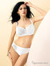 Оригинальный бюстгальтер на косточках с поролоновыми чашками. Выполнен из тонкой шелковистой ткани, внутренняя часть чашек выполнена из мягкого хлопкового материала. Несъемные эластичные бретели регулируются по длине. Застегивается на два крючка в три позиции. Декорирован кружевными вставками.