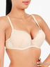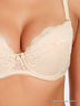 Оригинальный бюстгальтер на косточках с поролоновыми чашками. Выполнен из тонкой шелковистой ткани, внутренняя часть чашек выполнена из мягкого хлопкового материала. Съемные эластичные бретели регулируются по длине. Застегивается на два крючка в три позиции. Декорирован кружевными вставками.