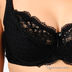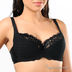 Оригинальный бюстгальтер классической формы на косточках с поролоновыми чашками. Выполнен из тонкой эластичной ткани, внутренняя часть чашек выполнена из мягкого хлопкового материала, снаружи покрыты кружевным материалом. Несъемные эластичные бретели регулируются по длине. Застегивается на два крючка в три позиции.