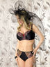 Оригинальный бюстгальтер на косточках с поролоновыми чашками. Выполнен из тонкой шелковистой ткани, внутренняя часть чашек выполнена из мягкого хлопкового материала. Несъемные эластичные бретели регулируются по длине. Застегивается на два крючка в три позиции. Декорирован кружевными вставками.