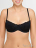 Оригинальный бюстгальтер push-up на косточках с поролоновой чашкой. Выполнен из тонкой эластичной ткани с рисунком "гусиная лапка". Несъемные эластичные бретели регулируются по длине. Застегивается на один крючок в три позиции. Чашки дополнены съемным поролоновым уплотнителем. Декорирован кружевными вставками.