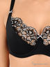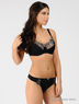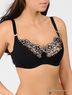Оригинальный бюстгальтер классической формы на косточках с поролоновой чашкой. Выполнен из тонкой эластичной ткани. Несъемные эластичные бретели регулируются по длине. Застегивается на два крючка в три позиции. Чашки декорированы кружевными вставками с силиконовой лентой.
