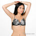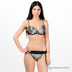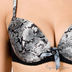 Бюстгальтер Push-up выполнен из атласного сатина с принтом "классический огурец". Чашечки на хлопковой подкладке и со съемными вкладышами декорированы крупным атласным бантиком со стразами черного цвета. Боковинки из тонкой сеточки оснащены косточками у основания для обеспечения дополнительной коррекции. Бретели регулируются по длине. Застежка на два крючка. Петли расположены в три ряда.