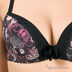 Притягательный бютгальтер на косточках с эффектом Push-up выполнен из тонкой микрофибры.Формованные чашечки со съемными вкладышами имеют хлопковую подкладку. Боковые каркасы обеспечивают дополнительную коррекцию. Декоративные элементы: принт на ткани, присборенная ткань на чашечках и воздушная розочка в месте их соединения. Бретели регулируются по длине. Застежка на два крючка. Петли расположены в три ряда для лучшей посадки по фигуре.