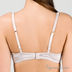 Притягательный бюстгальтер на каркасах выполнен из шелковистого сатина. Чашечки со съемными вкладышами на хлопковой подкладке декорированы изящной сеточкой, расшитой контрастными нитями. Бретели с нежной сатиновой отделкой спереди регулируются по длине. Соединение чашечек украшено атласными бантиками и гроздью жемчуга. Застрежка на два крючка. Петли расположены в три ряда, что способствует лучшей посадке по фигуре.