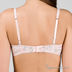 Изящный бюстгальтер-балконет выполнен из тончайшей микрофибры, декорирован элегантным принтом и объемной розочкой из легкого материала. Чашечки с хлопковой подкладкой украшены тесьмой – кружевом. Бретели из атласной резинки отстегиваются и регулируются по длине. Передняя часть бретелей отделана тонким материалом, приятным на ощупь. Зстежка на два крючка. Петли расположены в три ряда для лучшей посадки по фигуре.