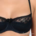 Эксклюзивный бюсгальтер-балконет из модной серии Promise. Формованная чашка выполнена из атласной ткани с графическим рисунком, край лифа украшен тончайшим кружевом. Регулируемые бретели.