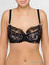Нарядный высокий бюстгальтер с комбинированной чашкой, отлично поддерживает и скрадывает грудь. Низ выполнен из черного гипюра и розового сатина, верх из черного кружева. Бока и спинка из однотонной черной эластичной ткани, бока усилены косточками. Бретели регулируются не убираются, сверху украшены бантиком. Внимание! В маленьких размерах бретели узкие.