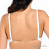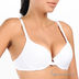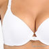 Бюстгальтер белого цвета, застёжка впереди, украшена стразиками. Чашка формованная, с отстёгивающимися бретелями. Спинка бюстгальтера из силикона.