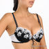 Чашка плотная (поролон 2мм) формованная на косточках, продублирована хлопком, со вставляющимися подушечками (поролон 5мм).Шнуровка между чашек подчеркивает форму груди.
