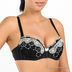 Чашка плотная (поролон 2мм) на косточках, продублирована хлопком, со вставляющимися подушечками (поролон 3мм). Верхняя часть чашек отделана кружевом. Бретели регулируются, отстегиваются. Спинка из мягкой ткани. Застежка: 2 крючка на 3 позиции.