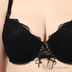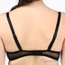 Между чашек шнуровка с шифоновой ленточкой. Шнуровка между чашек создаёт возможность разделения груди и создания красивой формы. Бретели ажурные регулируются, отстегиваются.