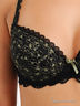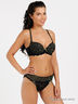 Бюстгальтер классической формы на косточках с поролоновой чашкой. Выполнен из тонкого кружевного материала, чашки из шелковистой ткани с принтом. Съемные эластичные бретели регулируются по длине. Застегивается на два крючка в три позиции.
