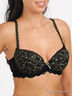 Бюстгальтер классической формы на косточках с поролоновой чашкой. Выполнен из тонкого кружевного материала, чашки из шелковистой ткани с принтом. Съемные эластичные бретели регулируются по длине. Застегивается на два крючка в три позиции.
