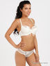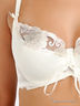 Бюстгальтер на косточках с поролоновой чашкой. Выполнен из тонкого эластичного материала. Несъемные эластичные бретели регулируются по длине. Застегивается на два крючка в три позиции. На чашках кружевные вставки.