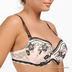 Бюстгальтер из микросетки с вышивкой, украшен кружевом.