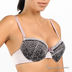 Бюстгальтер из микросетки с рисунком и люрексом. Соединение между чашками украшено бантиком.