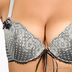 Чашка плотная (поролон 2мм) формованная на косточках, продублирована хлопком, со вставляющимися подушечками (поролон 3мм). Шнуровка между чашек подчеркивает форму груди. Одна чашка украшена бантиком.