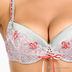 Чашка плотная (поролон 2мм) на косточках, продублирована хлопком, со вставляющимися подушечками (поролон 3мм). Шнуровка между чашек из лент красного и розового цветов подчеркивает форму груди.