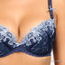 Чашка плотная (поролон 2мм) на косточках, продублирована хлопком, со вставляющимися подушечками (поролон 3мм). Верхняя часть чашек вышита рисунком голубого цвета. Бретели регулируются, отстегиваются, спереди украшены бантиками. Спинка из кружева. Застежка: 2 крючка на 3 позиции.
