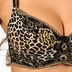 Бюстгальтер из эластичной ткани с рисунком леопарда. Благодаря конструкции чашки из трёх частей, бюстгальтер сильно приподнимает грудь и собирает её к центру.