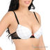 Эффектный бюстгальтер с формованными чашечками выполнен из высококачественного эластичного полотна M.G. CREATION (Франция) с рисунком "сеточка" на ярком белом фоне. Боковые детали выполнены из черного эластичного кружева, центр бюстгальтера украшает яркий бантик. Чашечки с эффектом Push-up.