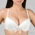 Элегантный бюстгальтер на косточках с эффектом Push-up. Формованные гладкие чашечки декорированы оборкой и бантом из органзы. Бретели регулируются по длине. Спинка выполнена из эласитного кружева. Застежка на один крючок.Петли расположены в четыре ряда.