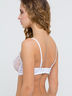 Модель с легкими, полупрозрачными чашками из изысканного шитья по ажурной сетке. Благодаря оригинальному крою чашек с двумя разнонаправленными вытачками бюстгальтер создаёт идеальную округлую форму груди.