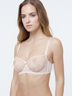 Модель с легкими, полупрозрачными чашками из изысканного шитья по ажурной сетке. Благодаря оригинальному крою чашек с двумя разнонаправленными вытачками бюстгальтер создаёт идеальную округлую форму груди.